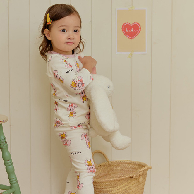 【新品到貨】緞帶奶白兔兔-雲柔衣長袖韓國童裝 [K65209]