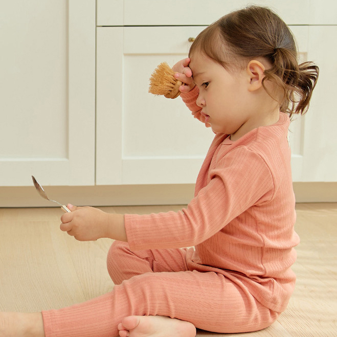 【新品到貨】桃粉柔舒日常-直條雲柔衣長袖韓國童裝 [K66109]