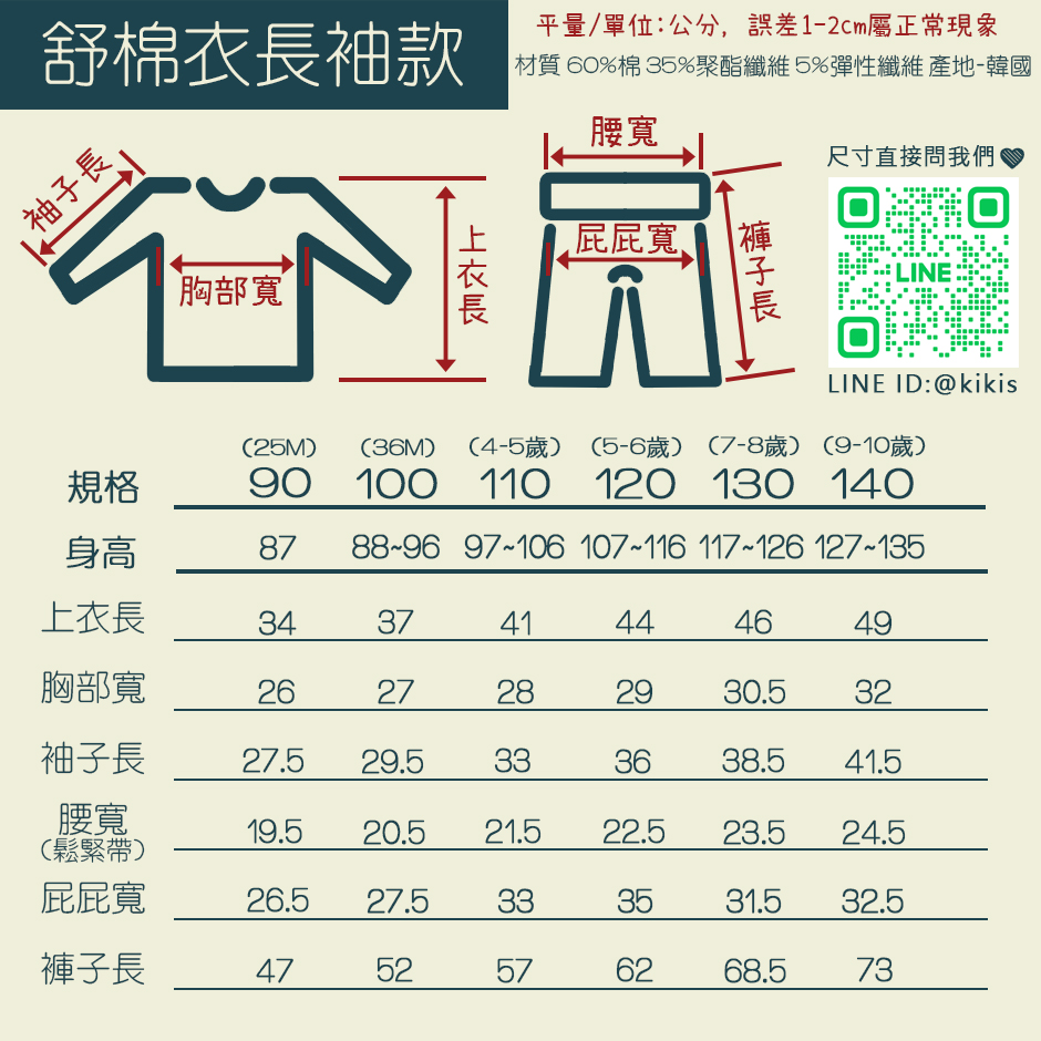 服飾為60%棉 35%聚酯纖維 5%彈性纖維